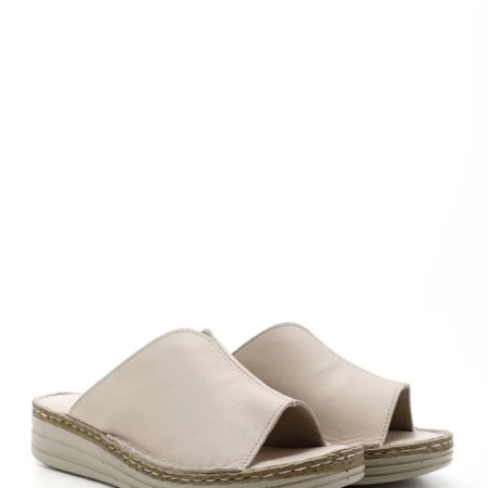 Kadın Bej Dolgu Topuk Hakiki Deri Comfort Terlik