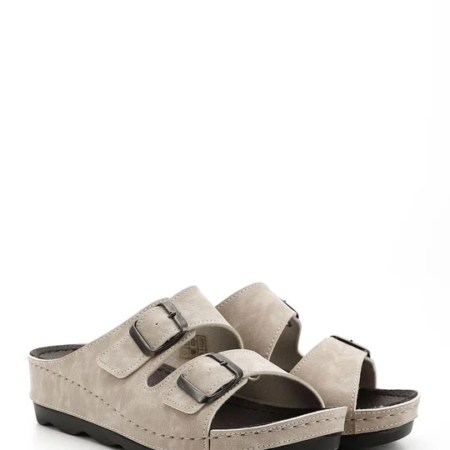 Kadın Bej Tokalı Dolgu Topuk Comfort Terlik